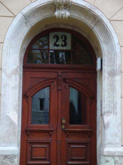 Bis zum Bombardement am 5. März 1945 stand an dieser Stelle ein ähnliches prächtiges Haus wie das erhaltene Eckhaus Nr. 23, in dem sich heute eine Fahrschule befindet. |