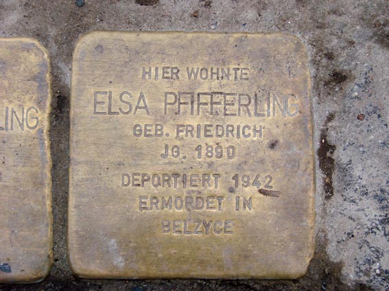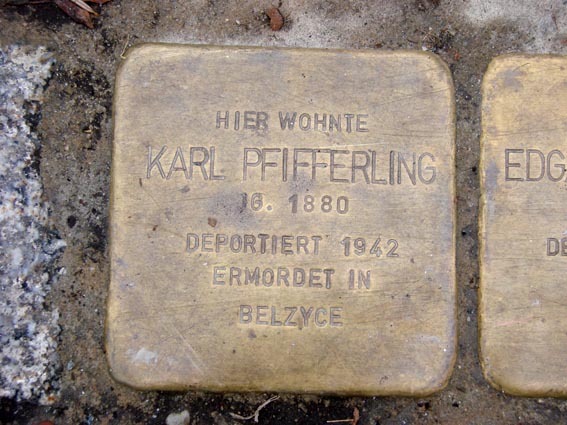 | Karl Pfifferling und seine Frau Elsa Pfifferling geborene Friedrich, beide Jahrgang 1890 – beide wurden im Mai 1942 deportiert und im Ghetto Belzyce bei Lublin ermordet. | ||