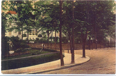 An der Kaßbergauffahrt/Ecke Hohe Straße stand die "Jägerin". Eine Bronzeskulptur von Prof. Harry Liebmann aus Bad Homburg. Auf Initiative des Chemnitzer Verschönerungsvereins hatte man sie gekauft und 1913 dort aufgestellt. |