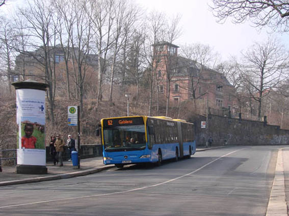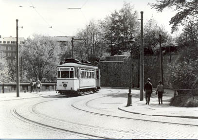 Bis Mitte Oktober 1983 fuhr die Straßenbahn über die Brücke "Kaßbergauffahrt", dann wurde sie durch moderne Gelenkomnibusse ersetzt. |